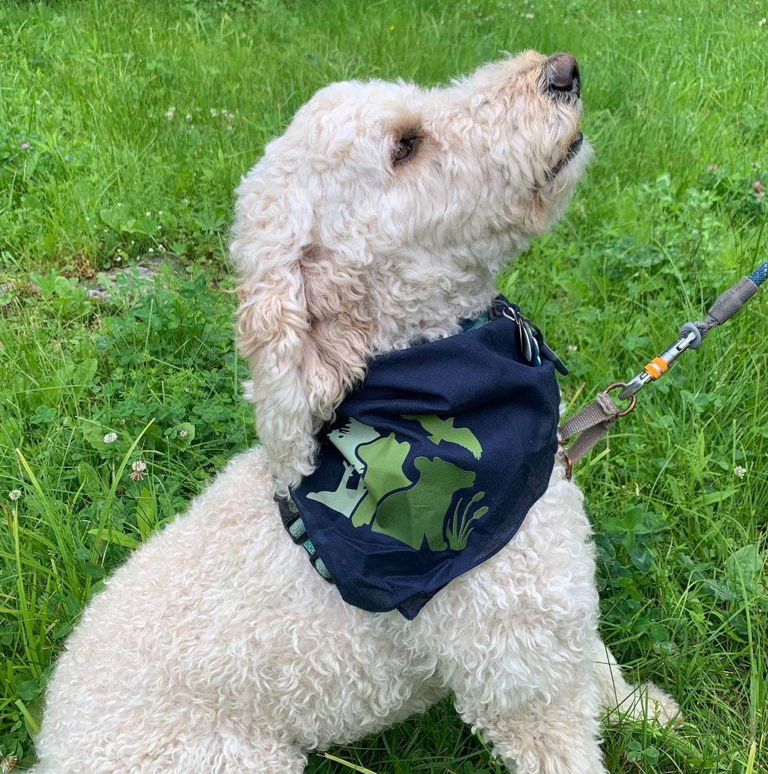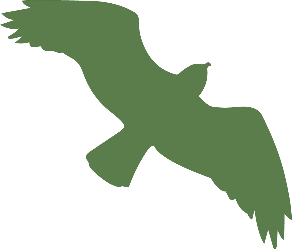 A calm gradation of four shades of green keeps the logo simple and earthy. The scene features four identifiable native species.
